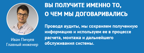 Каждый проект в «Ай Пи Решения» проходит 5 стадий контроля качества, его сопровождает личный менеджер, рассчитывает персональный инженер проекта, устанавливают сертифицированные инсталляторы и поддерживает служба технической поддержки.